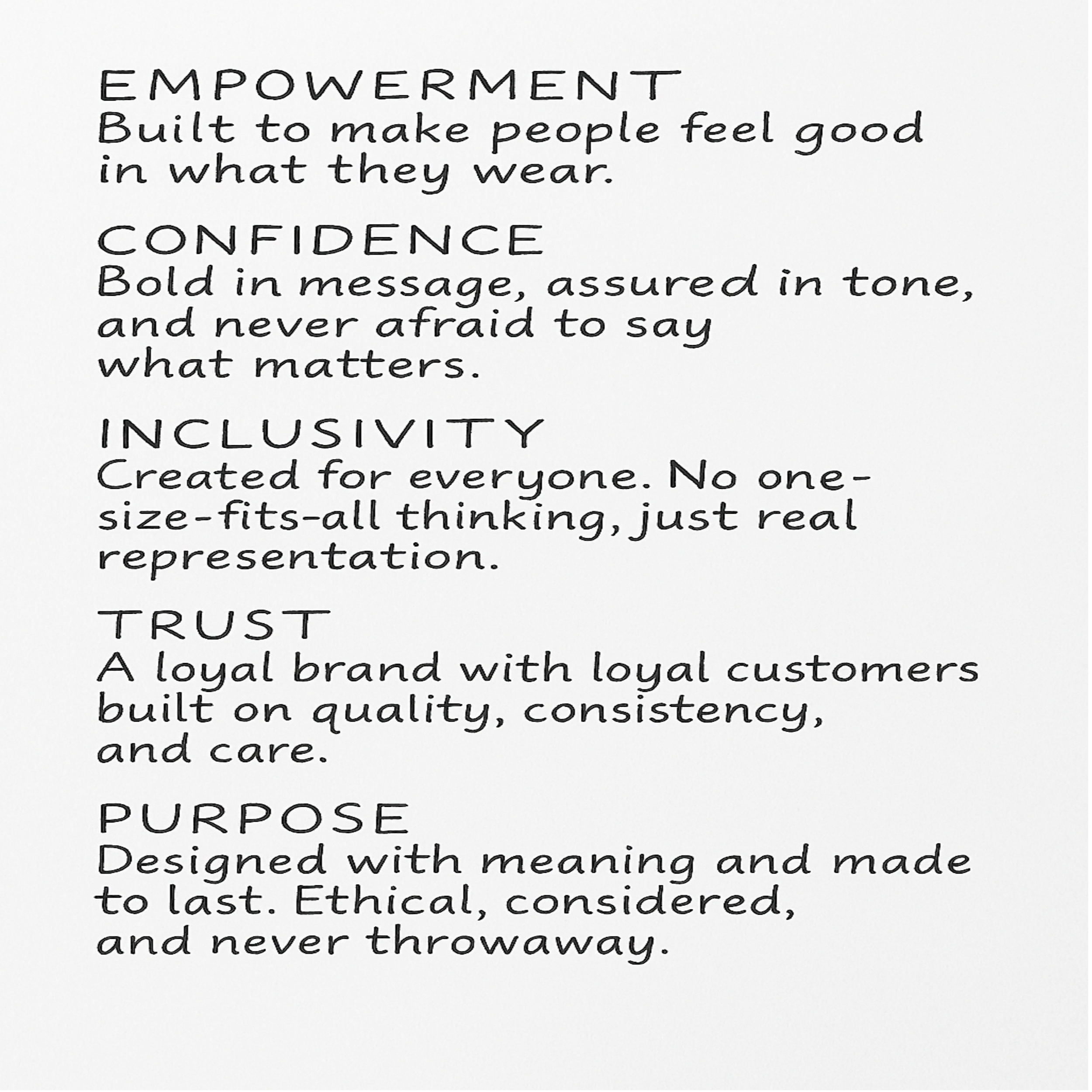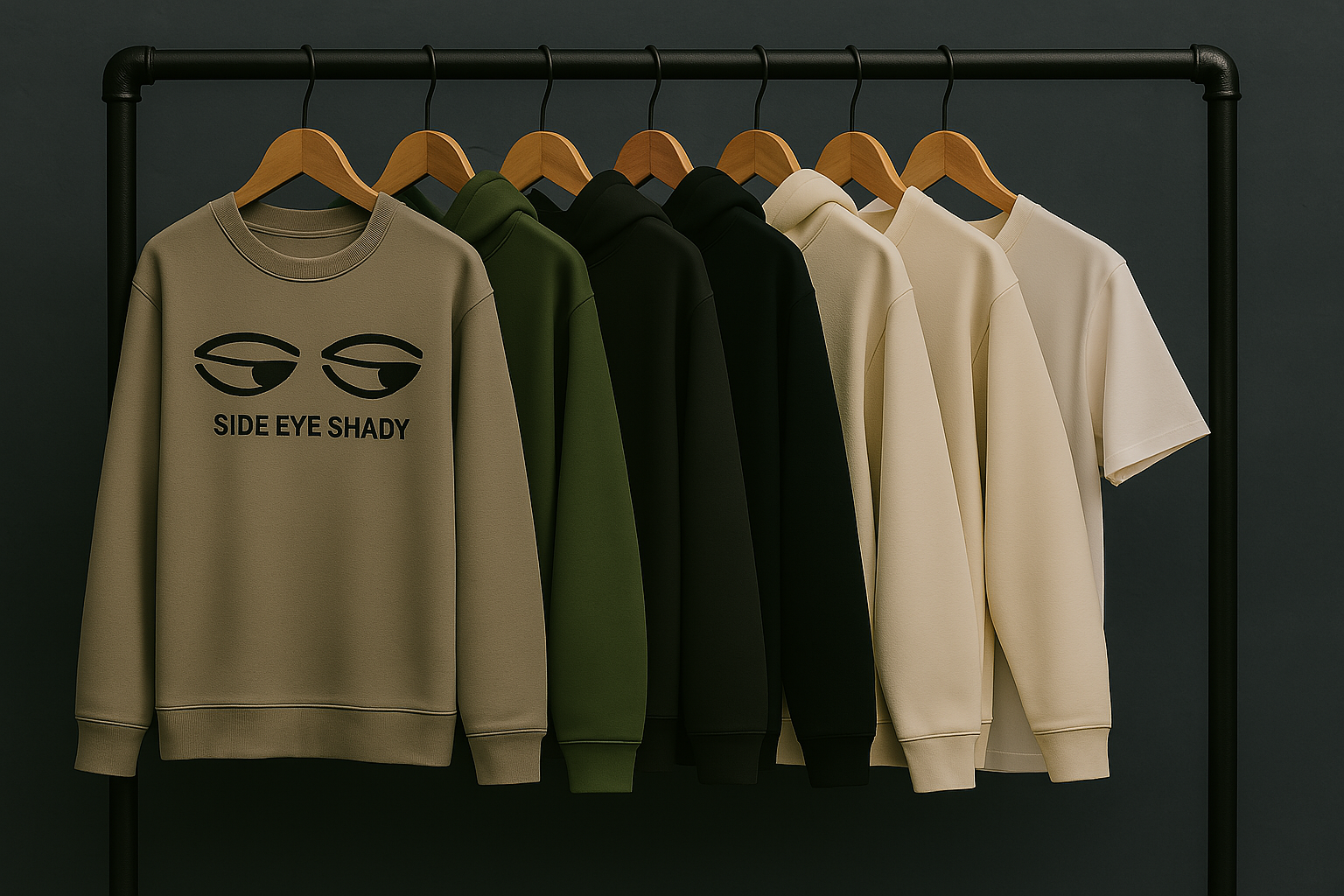 Every piece is designed to feel good, last longer and speak with a quiet strength. From considered fabrics to low impact production, everything's made with care, intention and just the right amount of Side Eye attitude.