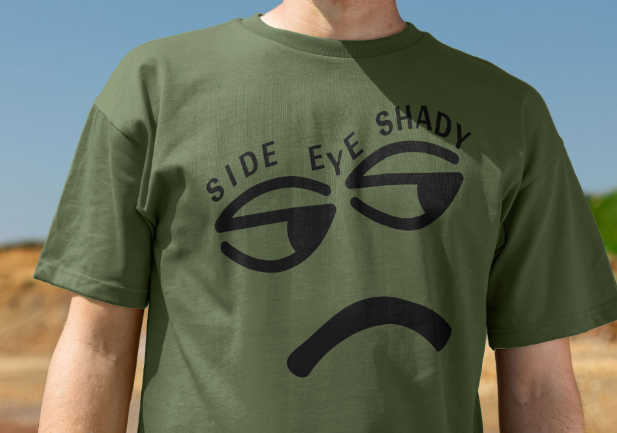 Product Details: Oversized in a good way and with a high neck, this is one of Side Eye Shady’s favourite style of Tee complete with a drop shoulder. Classic Eyes and classic attitude to the front – We love the cheeky in this one.